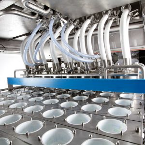 Ayran plastic cup filling machine is used for filling Turkey’s national drink ayran to 75mm and 90mm diameter plastic glasses. Plastic ayran filling machine which is generally operating with rotary table system can also be designed to operate in linear system in case the production capacity is high. It is possible to integrate sequencer robots to the machines designed for linear systems for placing the products in crates.